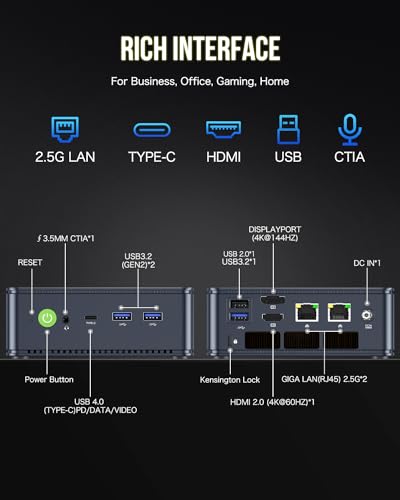 【New Gen USB 4.0】Advanced USB4 port features 8K@60Hz display experience, supports a maximum transfer speed of 40 Gbps, is compatible with Display Paramount mount a discrete video card via USB4, and USB4 simultaneously powers a 15w portable touch display. All-in-one mini pc is widely used for games, image editing, browsing, watching movies, programming etc.