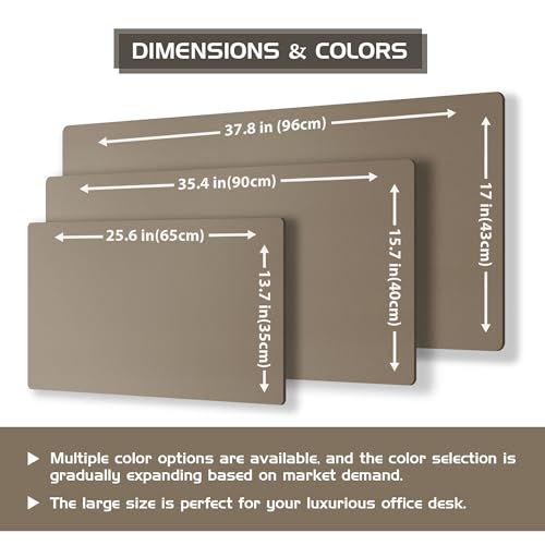 Variety of Colors and Sizes: Available in a range of colors and sizes, our desk pad can seamlessly blend into diverse office and home environments, catering to individual needs and preferences. Size of 25.6″x13.7″, 35.4″x15.7″, 37.8″x17″, thickness 0.08 inches, thick enough to provide soft and elastic touching; large enough to accommodate your laptop, mouse, keyboard and journal