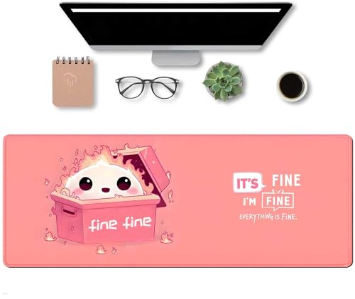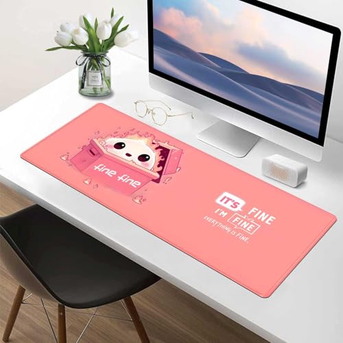 Large Pink Mouse Pad, Funny Mouse Pads for Desk, Cute Pink Desk Mat Office Decor for Women Girls, Dumpster on Fire Mousepad wiht Stitched Edge Non-Slip Rubber Base,Desk Accessories for School Office Home 31.5″ x 11.8″