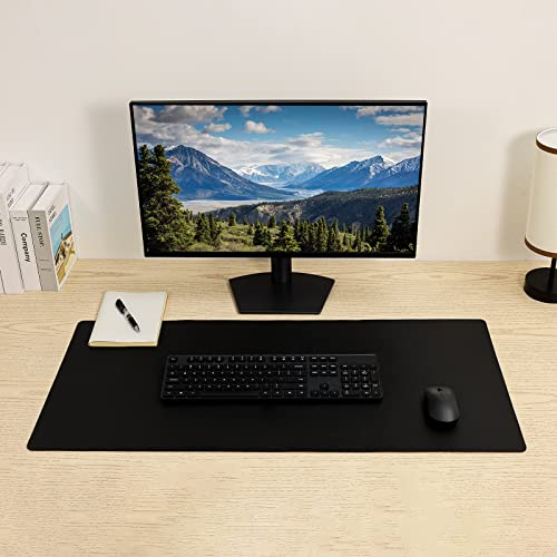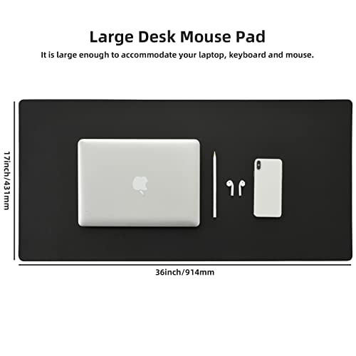 Leather Desk Pad,Wolaile 36×17 inch Large Mouse Pad,Waterproof Non-Slip Writing Desk Blotter,Computer Mat Desktop Protector for Office Home,Black