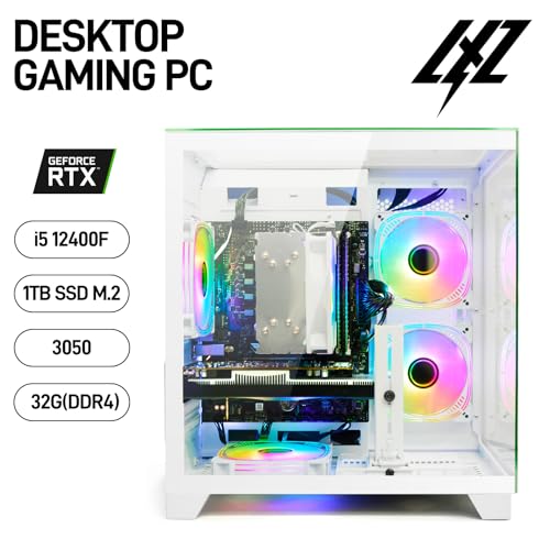 LXZ Gaming PC Desktop 12th I5-12400F, 6 core 2.5GHz Desktop Computer, GeForce RTX 3050, 32G DDR4 RAM, 1TB NVME SSD, Prebuilt Tower Computer for Gaming, Home and Office (White)