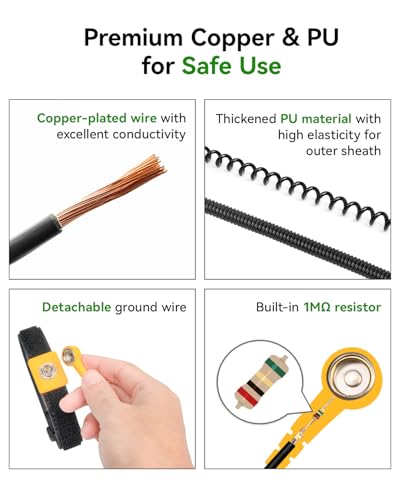BUILT TO LAST ACROSS MULTIPLE PROJECTS: Made with quality PU materials and reinforced wiring, this esd wrist strap withstands daily wear and repeated stretching—ready for everything from electronics assembly to workshop repairs