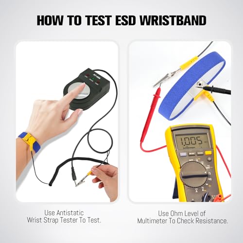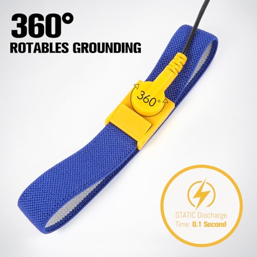 ✔︎ SAFE WRISTBAND: FEITA anti-static esd wristband has a built-in 1 MΩ resistor, which protects your electronic components from accidental electrostatic discharge (ESD) damage during repairs. Anti static bracelet eliminates static electricity from human body in 0.1s to equalize the charge between your hand and the electronic devices.
