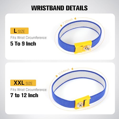 ✔︎ ADJUSTABLE STRAP: ESD wrist band is adjustable to size XXL(Total length 12″/30.5cm) with a 10.0″/25.5cm unstretched circumference, features a very comforting material that has silver conductive woven fibers for minimum skin irritation and maximum conductivity. Anti static bracelet can be adjusted freely to fits your wrist comfortably.