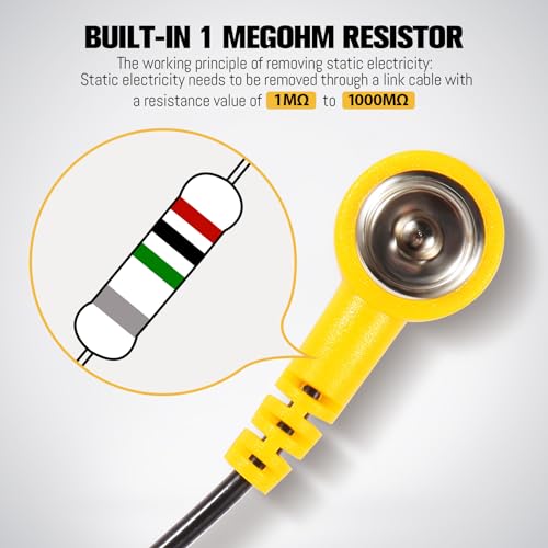 ✔︎ UPGRADED QUALITY: Upgraded with 7pcs Copper foils make the Coiled Cord with high resilience and conductivity and more durable. antistatic wrist straps have passed through resistance value(1M Ohms) test to properly protect against electrostatic discharge.