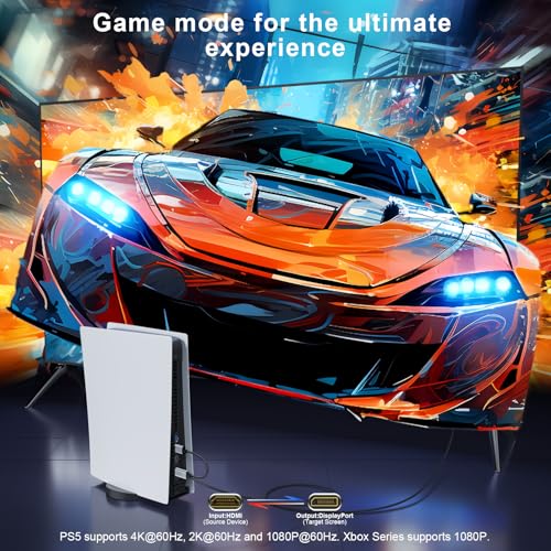 【Unlock HD Gaming Experience】HDMI Source to Displayport Monitor for PS 5, Xbox One/360/S series, steam dack. allows you to connect your game console to the big screen. Note: This HDMI TO DisplayPort cannot increase the native resolution of the game, 【Xbox series will be displayed at 1080p@60Hz, PS5 supports up to 4K@60Hz resolution】