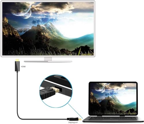 Displayport to HDMI Cable, 4k Display Port Male to HDMI Male Cord Unidirectional Compatible with HP, Lenovo, AMD, NVIDIA, Desktop