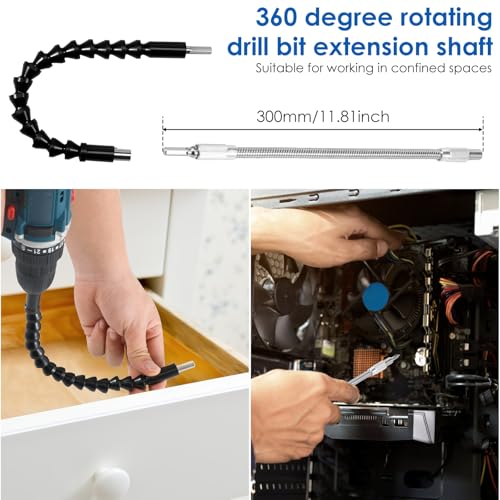 Flexible: Designed for hard to reach areas, these flexible drill extensions bend 360°, allowing you to easily handle tasks such as furniture assembly and tight space repairs.